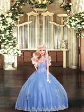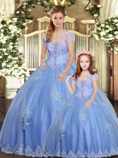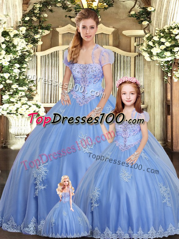 Floor Length Light Blue Quinceanera Gown Strapless Sleeveless Lace Up