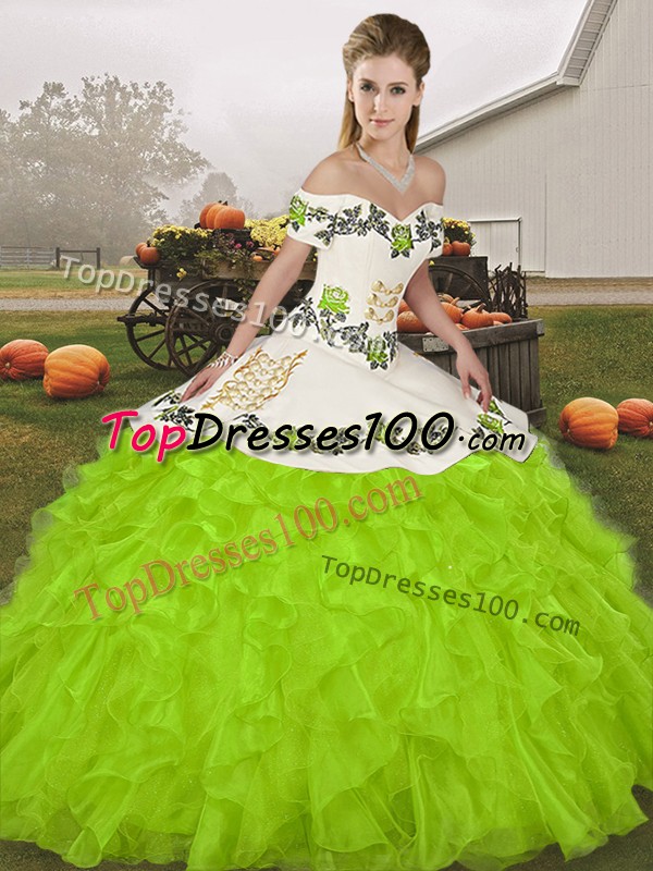 Floor Length Yellow Green Vestidos de Quinceanera Organza Sleeveless Embroidery and Ruffles