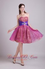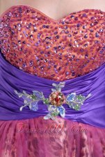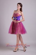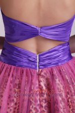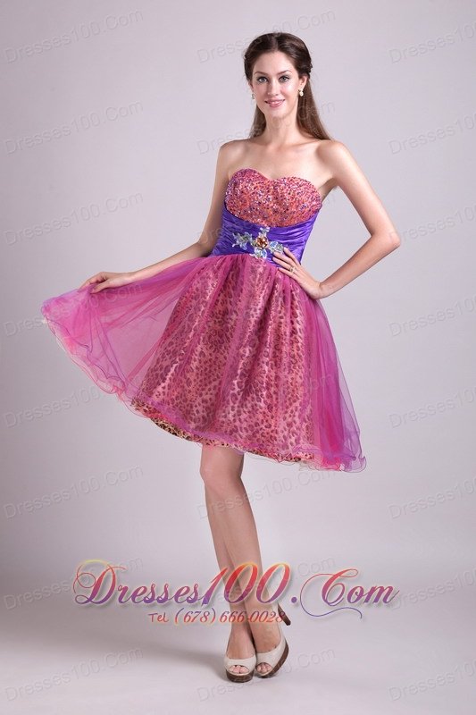 Sexy and cute! This beautiful sweetheart neckline short prom dress is highlighted with the leopard pattern below the organza skirt, which makes the dress has a wild look. While the intricate beading on the bust aera and the purple wide strap under it adds more loveliness and charm to the dress. You can not miss it!