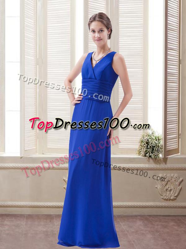 Go for simple luxury in this evening gown. This formal dress is sleeveless with a V-neckline. Ruched fabric creates a woven motif at the bodice. The waist is circled with ruched fabric. The skirt has column shape. This dress can be the epitome of modern glamour or have a more bohemian feel depending on how you style it.