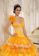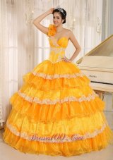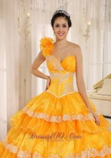 So gorgeous ball gown dress includes design of one shoulder adorned with flowers which is generally considered more provocative than other style. You can find that refined applique decorate the whole bodice which looks charming. The coset back will make you looks sexy. Dressing this ball gown, you will light up the night. Throughout the full maxi dress with many tiers hemmed with floral lace, the elegant and poised temperature is displayed entirely. What ?s more, no matter what color you chose, the amazing effect won ?t lose. The organza makes you feel soft and smooth.