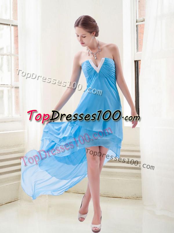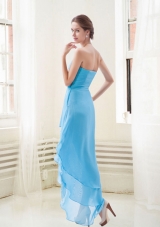 This sexy high low gown features a cutout neckline trimmed in dazzling crystals. The sheer fabric is shirred to create fullness as the two delicate layers drift softly to the high-low hemline. Feel flirty and feminine in this light and breezy dress, all the way down through the asymmetrical low part of the skirt. What's more the end effect is completely feminine and completely sexy.