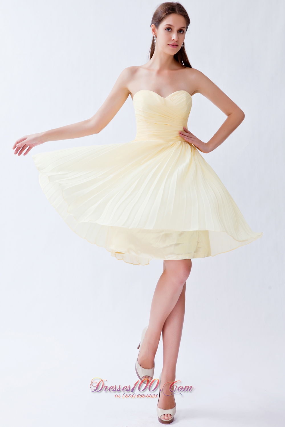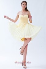 Show your fun and chic in this short prom dress! The bodice has charming sweetheart neckline and a ruched waistband that releases your eager. The skirt looks like shutters to make you different. The zipper up closure completes the fabulous look. Such a perfect dress, why not bring it to your party?