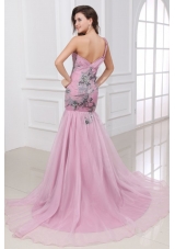 one shoulder sweet mermaid prom theme dresses puffy rose pink princess |