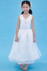 a line v neck flower girl dress |