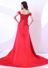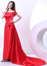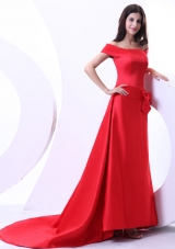 A super hot dress in 2013! The red prom dress features cap sleeves with off the shoulder neckline. Bold bowknot design at the side of the waist makes you like a little princess in the fairy tail! A stunning and lovely dress for those who wants to be pretty as the little princess! Last but not the least, the dress is necessary to be gorgeous with the gorgeous brush train.