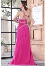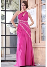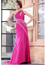 one shoulder hot pink prom evening dress sweep train dreamy |