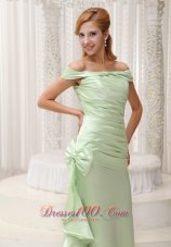 Dressing this yellow green prom style, you will light up the night! This creation features a pleated bodice and twist hem around the back to the neckline to support the shoulder forming cap shoulders. The highlight of the dress is the bowknot streaming down a handkerchief falling down to the floor. The floor-length skirt has a brush train which makes you a princess.