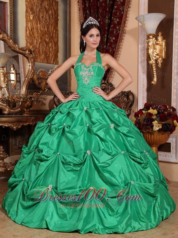 Picture-perfect elegance abounds on this utterly magnificent dress! Its artfully beaded sweetheart bust area and Ruffles on the bodice also perfectly textured for a true fairytale look. The skirt sweeps boldly to the floor in a lustrous and exciting way. Chic pickups bring even more glamour to the table.The lower portion of this dress shimmers with sparking embellishments. With the traditional corset and a halter one the neck,you will be the most special one in any prom!