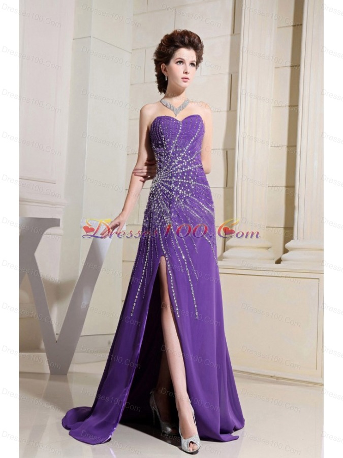 This tight sexy prom dress is sure to please! Beaded bodice, sweetheart neckline, seductive side slit, form fitting silhouette, delicate beading and elegant brush train. Close-fitting design and slit of the dress undoubtedly expose your charming and slim figure. Why not take it to the party?