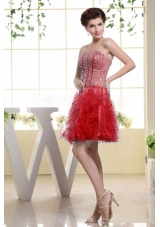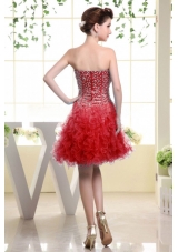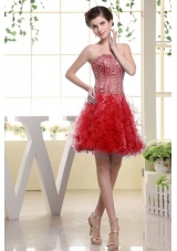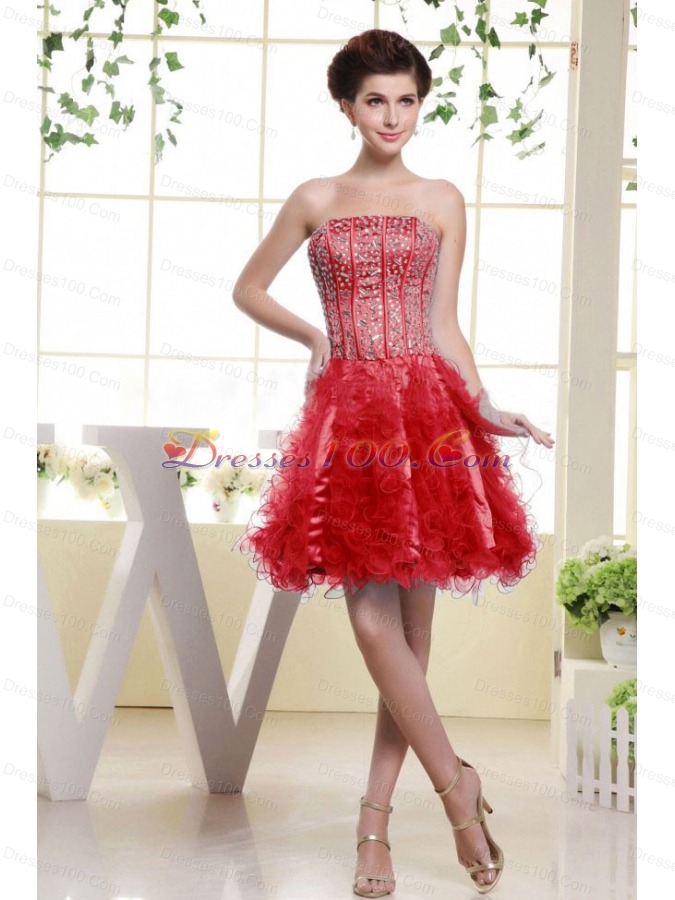 Show off those sexy legs in this tempting mini dress at your prom or cocktail party. Celebrity personality will shine in this hot little mini-length dress. Sparkling boning with beadings all over the strapless fitted bodice, the mini skirt has extra kick with exquisite ruffles throughout the whole skirt. A zipper up completes this design. What are you waiting for? Bring it to your home!