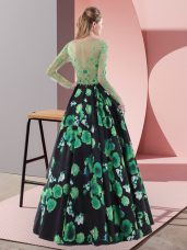 Home >  Prom Dresses >  Most Popular Prom Dresses > Scoop Long Sleeves Homecoming Dress Sweep Train Appliques Multi-color Printed