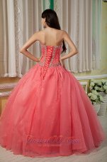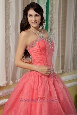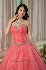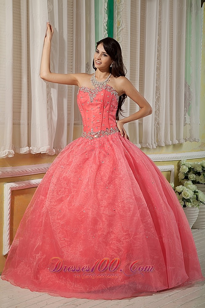 watermelon quinceanera dress with beadings |