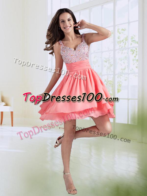 Short A Line Straps Beading Prom Dress in Watermelon Red
