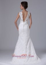 lace wedding dress with sweep train |