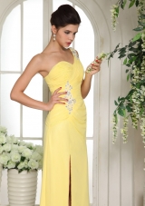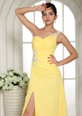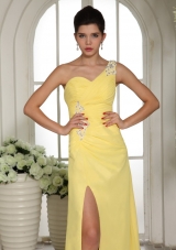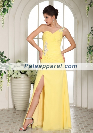 This beautiful one shoulder dress sculpts the body in all the right places. This dress is so gorgeous, it would even make Cinderella jealous! Features include beading resembling that of crushed glass on one side of the waist part and deep side slit. Sweet elegance for your special event. The long floor length skirt is amazing and surprising. You are certain to be noticed for your stylish taste!
