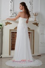Add a romantic to any special occasion in this elegant dress! This one has a modest strapless straight cut neckline trimed with fine beadings to show a exquisite design. The full-length skirt flows beautifully with a loose fit creating a small train to complete the dress. A lace up corset style closure in the back secures the dress in place. Pure and Fresh dress is waiting for your favour!