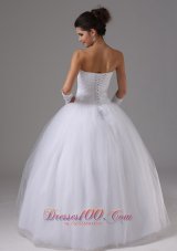 Simply designed dresses can also make a dramatic first impression, this white wedding dress is the perfect example. The elegant sweetheart bodice features intricate beadwork and exquisite penetrated cross ruching lines.The full ball gown tulle skirt is pure with no redundant, and an adjustable lace up in the back completes this fabulous design. You are sure to be the most beautiful bride. What are you looking for? Just this one!